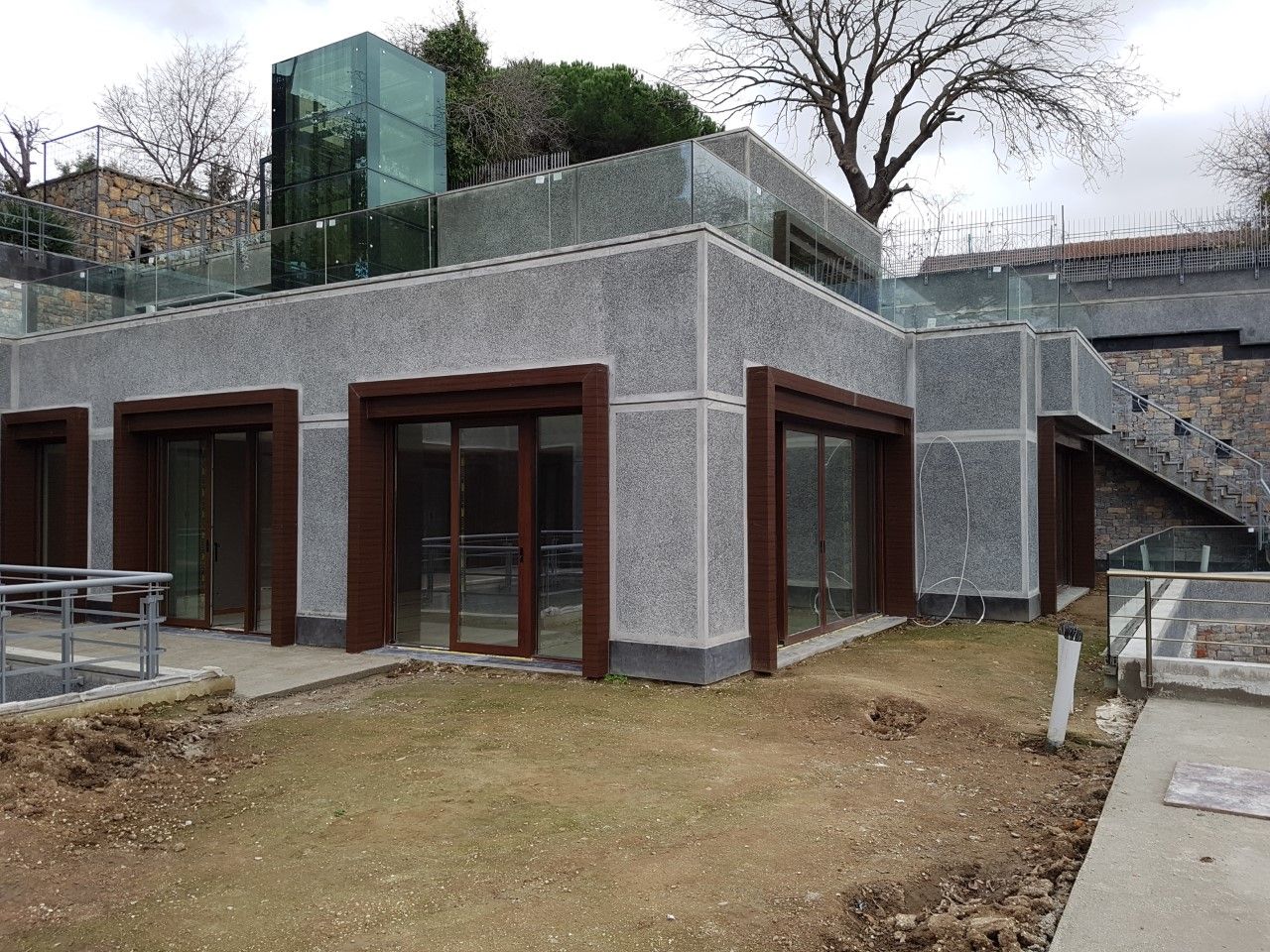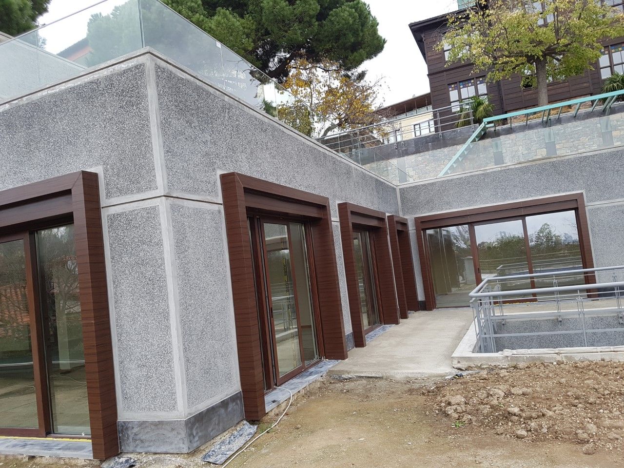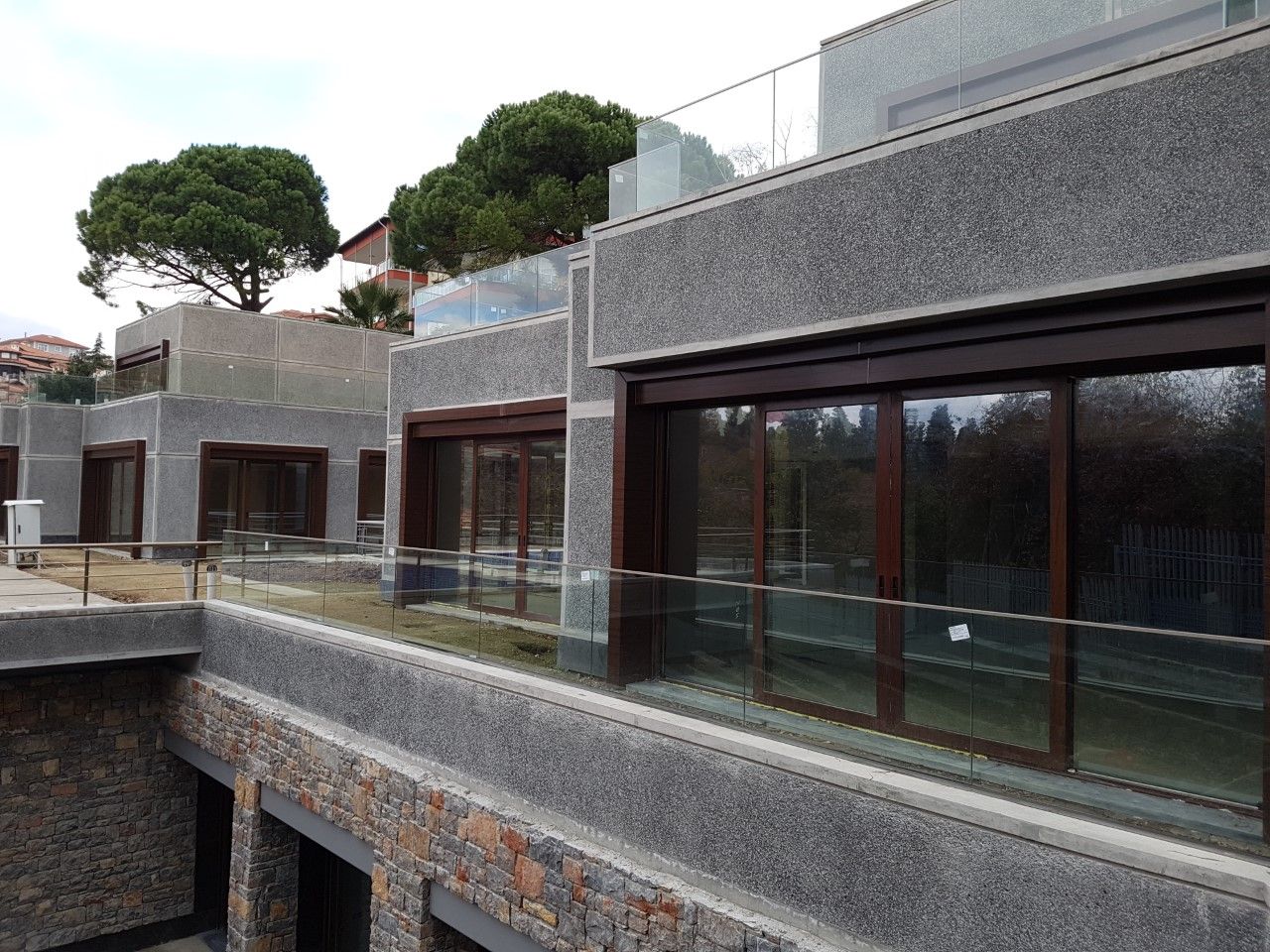 Tüm cephelerin, astar, serpme sıva, kaba sıva ve mozaik sıva (glassiva) uygulaması yapılmıştır. Duvar üzerine mozaik harpuşta uygulaması yapılmıştır.