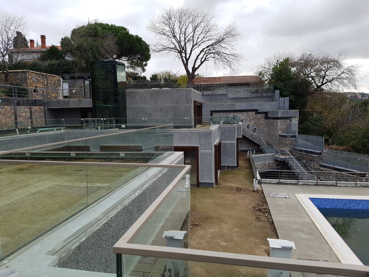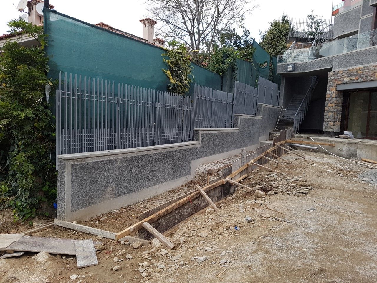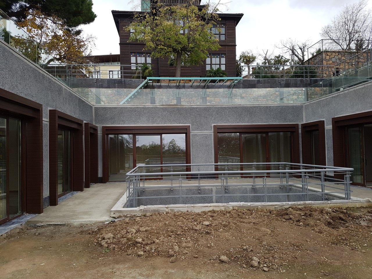 Tüm cephelerin, astar, serpme sıva, kaba sıva ve mozaik sıva (glassiva) uygulaması yapılmıştır. Duvar üzerine mozaik harpuşta uygulaması yapılmıştır.